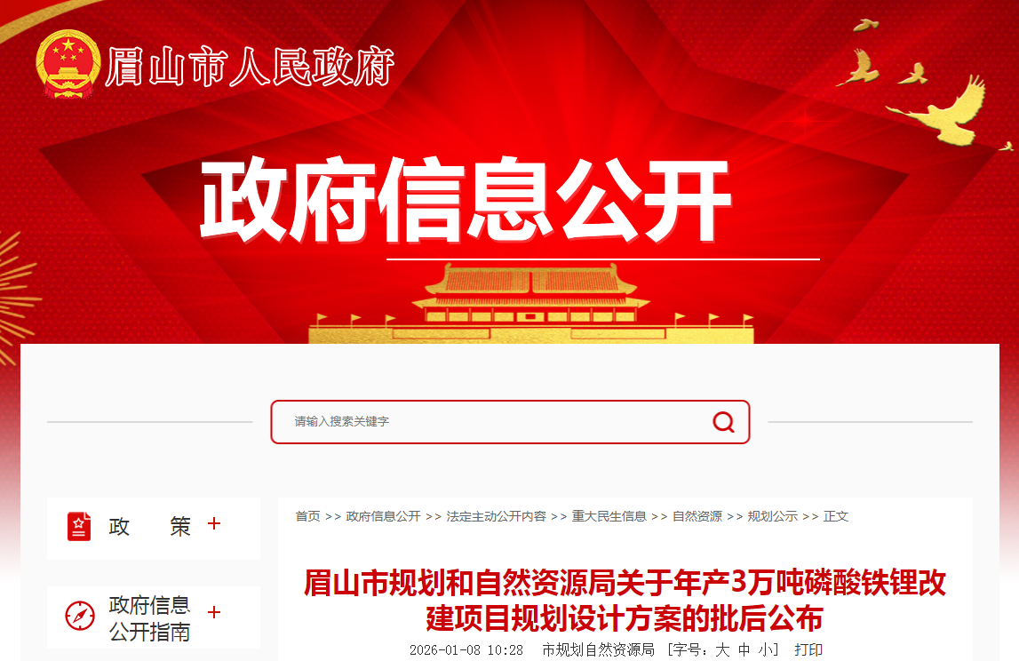 日前,眉山市规划和自然资源局就万华化学(四川)有限公司“年产3万吨磷酸铁锂改建项目”规划设计方案进行批后公布,标志着项目......