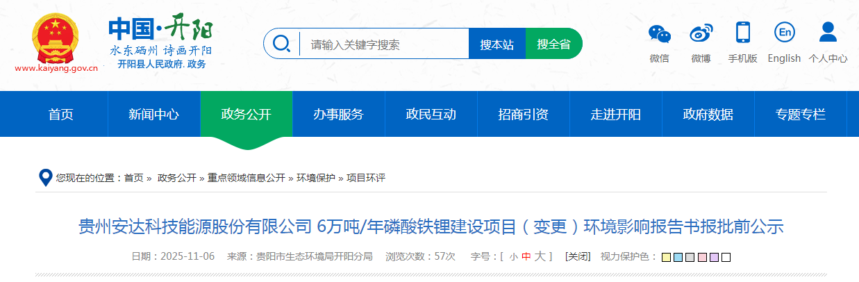 继45万吨磷酸铁锂前驱体项目进入环评公示阶段后,安达科技年产6万吨磷酸铁锂正极材料项目也迎来新进展。日前,贵阳市生态环境......