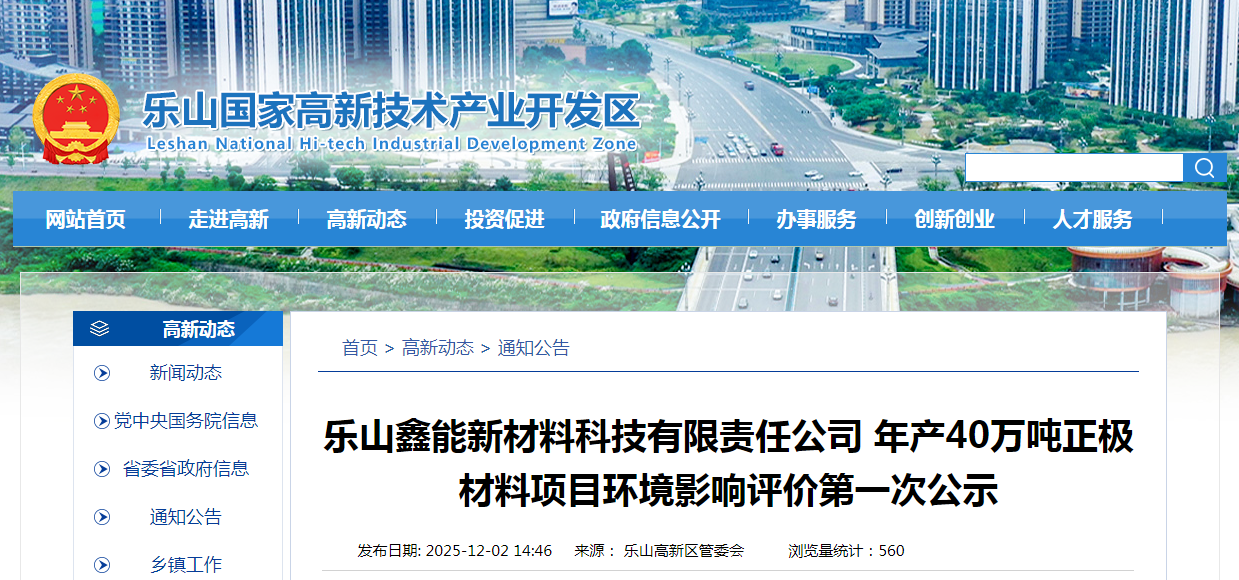 12月15日,嘉兴市生态环境局桐乡分局发布了《关于浙江宏鑫锂电有限公司年产5.6GWh新能源锂电池制造基地建设项目环境影......